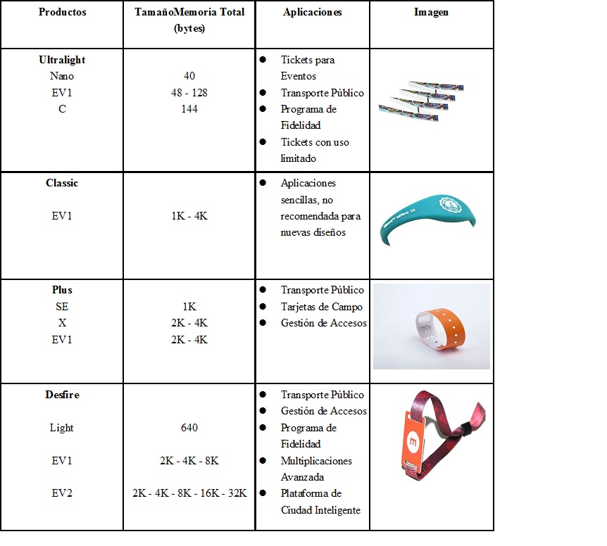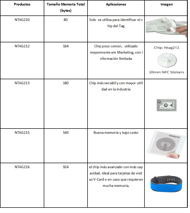 Los Tags NFC más comercializado es el NTAG, en la siguiente tabla describimos sus características: